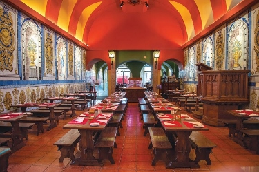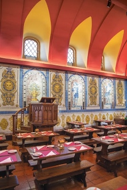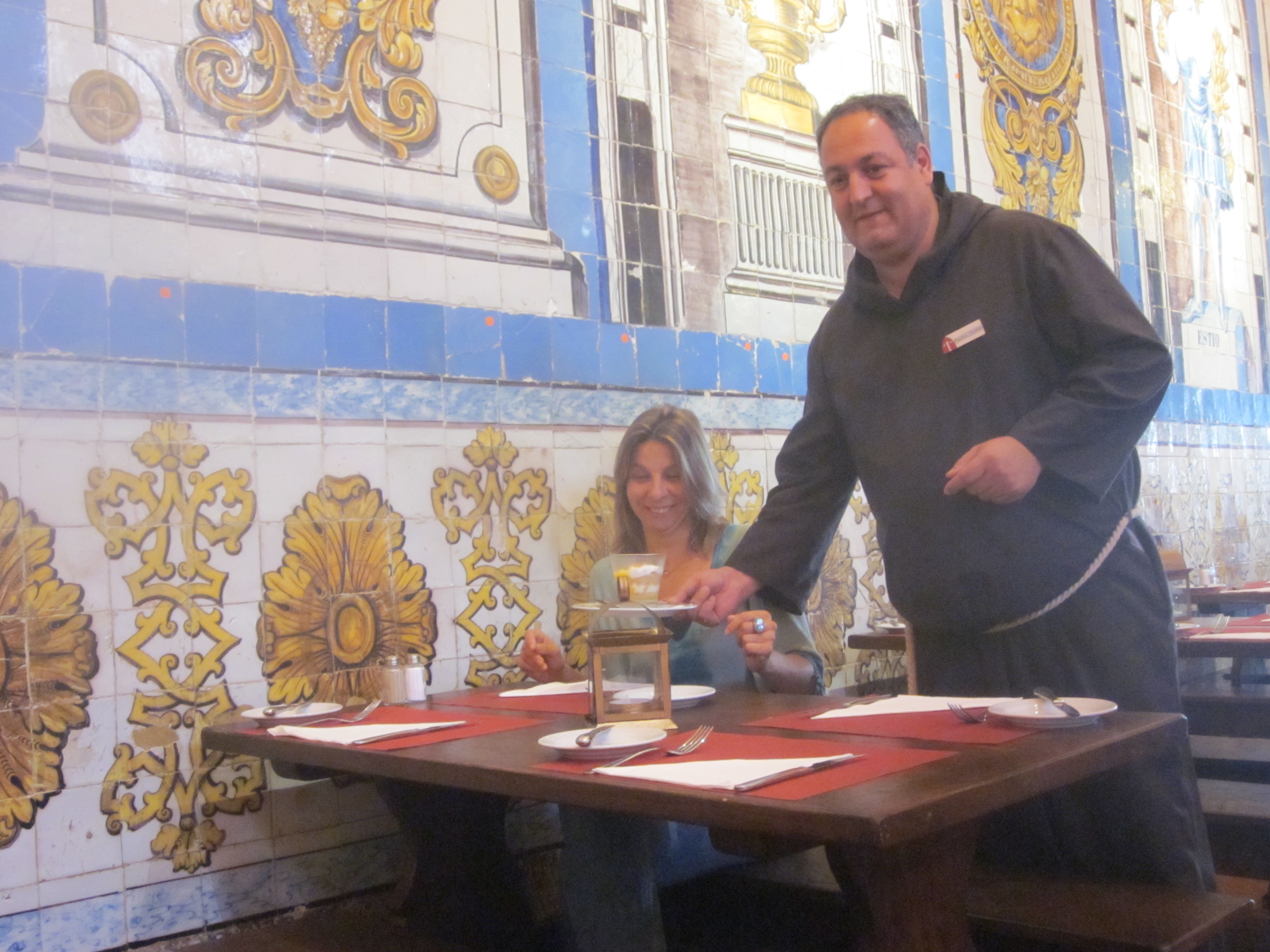 Mas a visita à Cervejaria Trindade não foi apenas para fazer uma refeição e sim para conhecer a nova Cervejaria. Isto porque a “casa” fez algumas mudanças. A começar pelo traje dos funcionários. Retomou-se às origens e hoje os clientes são servidos por monges (e monjas). E, se ficarem na primeira sala poderão ter um vislumbre do que era viver naquele local há 800 anos. Mesas e bancos de correr (em madeira) a proporcionar um maior convívio entre os comensais e até a cátedra, um vestígio de quando aquele edifício era ainda um mosteiro.