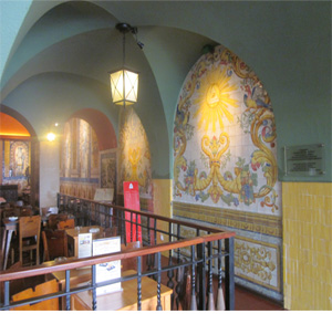 Entrar na Cervejaria Trindade é recuar no tempo. E ter uma lição de história. Da história portuguesa. Ao mesmo tempo que se obtém todo um conjunto de conhecimentos da Maçonaria (que não eram suposto ser do conhecimento geral). Para isso basta ir até à entrada, na zona do bar, e observar os painéis de azulejo.